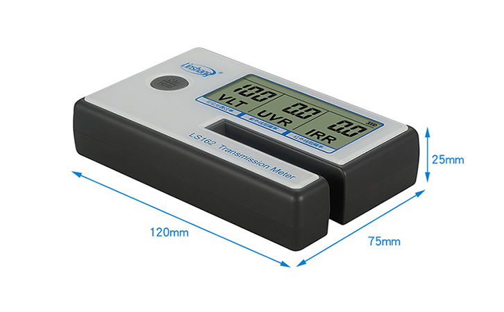 LS162便攜式太陽膜測試儀是款體積小巧便于攜帶的防爆膜測試儀,測試卡槽8mm,適用于汽車防爆膜測試、貼膜玻璃透過率測試,可同時測試材料(如太陽膜,防爆膜,手機鏡片,鍍膜材料和涂料等透光物質)的紅外線,紫外線的阻隔率和可見光的透過率。紅外線中心波段940nm,特別適合測試吸收膜。