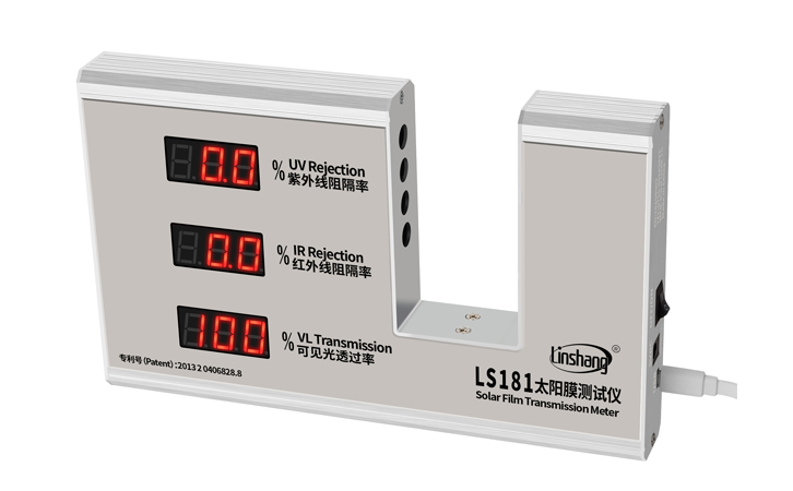 林上廠家供應LS181太陽膜測試儀,適用于汽車窗膜透光率檢測和紫外線紅外線阻隔率測試,平行光路設(shè)計,測試數(shù)據(jù)不受樣品放置位置影響,是一款高精度的汽車膜檢測儀。LS181太陽膜測試儀的測試原理是采用紫外光源,可見光源和紅外光源照射被測透明物質(zhì),感應器分別探測三種光源的入射光強和透過被測透明物質(zhì)后的光強,透過光強與入射光強的比值即為透過率,用百分數(shù)表示。大多數(shù)的太陽膜,可見光標注透過率指標,紅外線和紫外線標注阻隔率指標,阻隔率=100%-透過率。LS181太陽膜測試儀直接測量和顯示紫外線的阻隔率,紅外線的阻隔率和可見光透過率,方便讀數(shù)和理解。