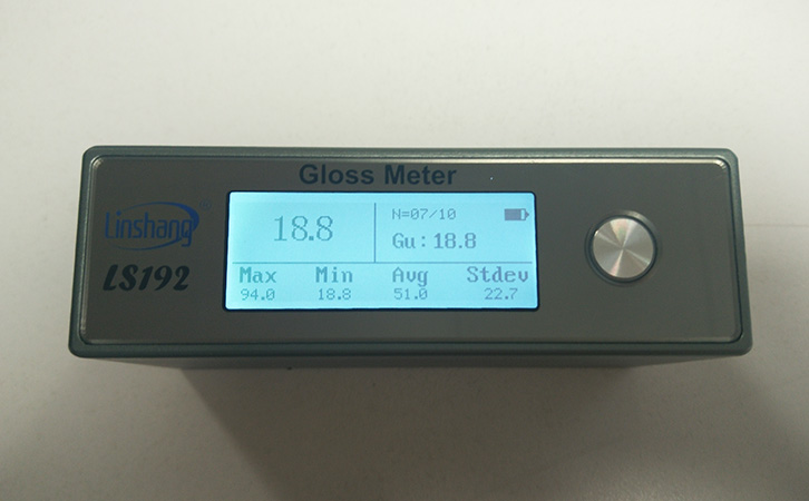 林上單角度光澤度計LS192,是確保通過計量院檢測的一級工作機,智能實時統計測量的最大值,最小值,平均值,均方差值等,可以分析材料光澤度的均勻性。