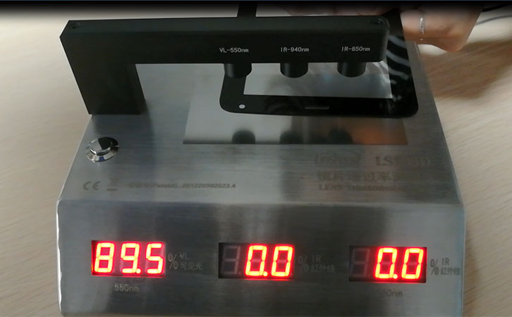 LS108D手機蓋板測試儀可以測量可見光550nm的透過率,紅外線940nm,850nm的透過率。